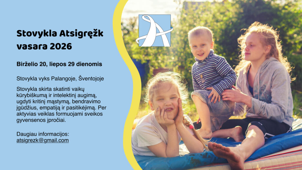 Š.m. liepos 4-8 dienomis vyks vaikų vasaros poilsio stovyklą „Atsigręžk į vaikus“ vasara (1 pamaina 5 d.) stovykloje dalyvaus 41 vaikas . Stovyklą iš dalies finansuoja Vilniaus miesto savivaldybė ir VšĮ „Atsigręžk į vaikus“.